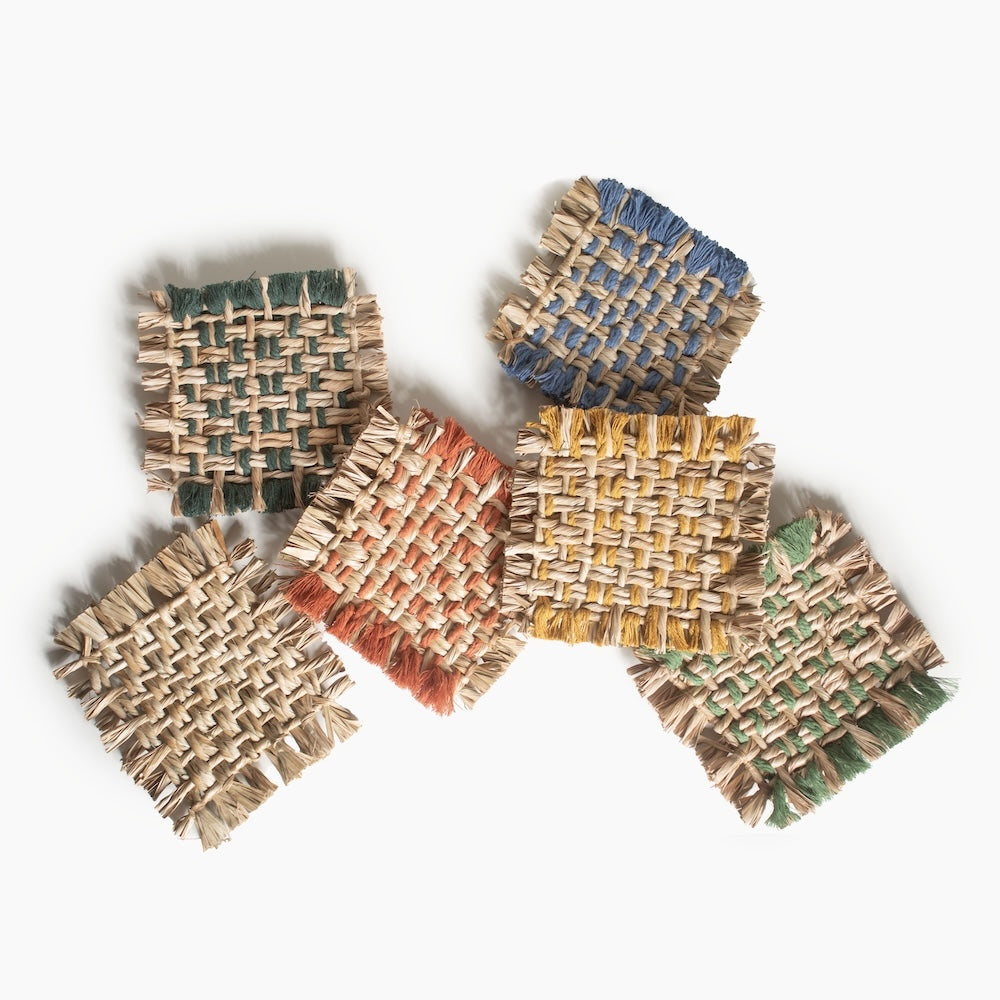 Sets de portavasos tejidos a mano en guano e hilo de macramé.